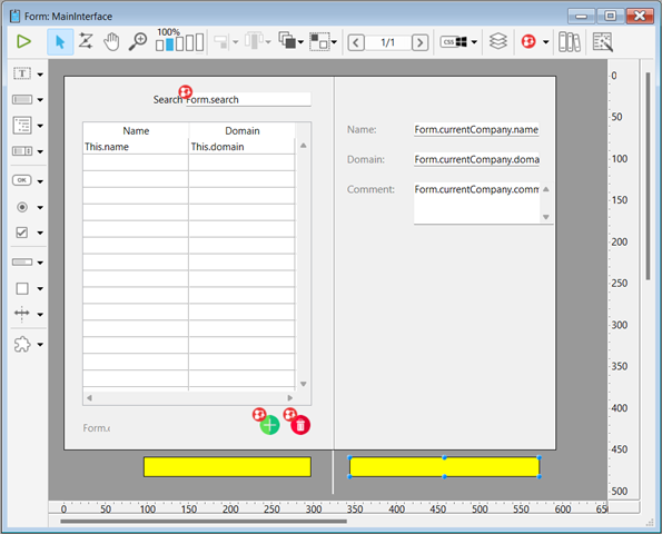 Notice that in the separator properties, we set the bottom to 600 pixels. Once the left part is ready, we can duplicate the rectangle to handle the right side of the form: